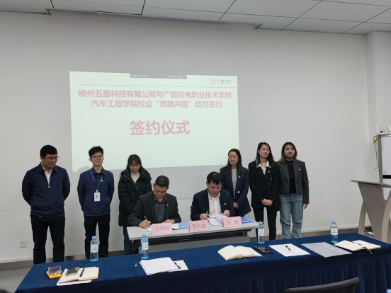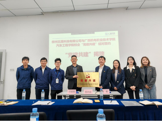 柳州五菱汽车科技有限公司党支部书记田留胜致辞,表示党建共同体的建立,是顺应时代发展要求的积极探索。在这个过程中,我们各个党组织将携手共进,整合资源。通过结对,努力将“校企党建共同体”建设成为“人才引育共同体、就业创业共同体、人才培养共同体、深化改革共同体、组织堡垒共同体”,建立起校企党组织互帮互学、共创共赢的新机制,构建产教融合新格局,让党建工作在新的合作模式下焕发出更加耀眼的光芒。