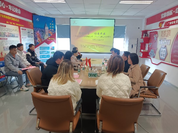 活动伊始,我院教工第二党支部书记莫荣珍对学院办学情况、人才培养及党建活动等方面进行了介绍,广西机电设备有限责任公司党委副书记周俊玲详细介绍了公司的基本情况、人才需求情况及党建工作经验。经过介绍,莫荣珍表示,学院非常重视与企业的合作,希望通过支部共建,凝聚双方力量,共同培养高质量技术技能人才。