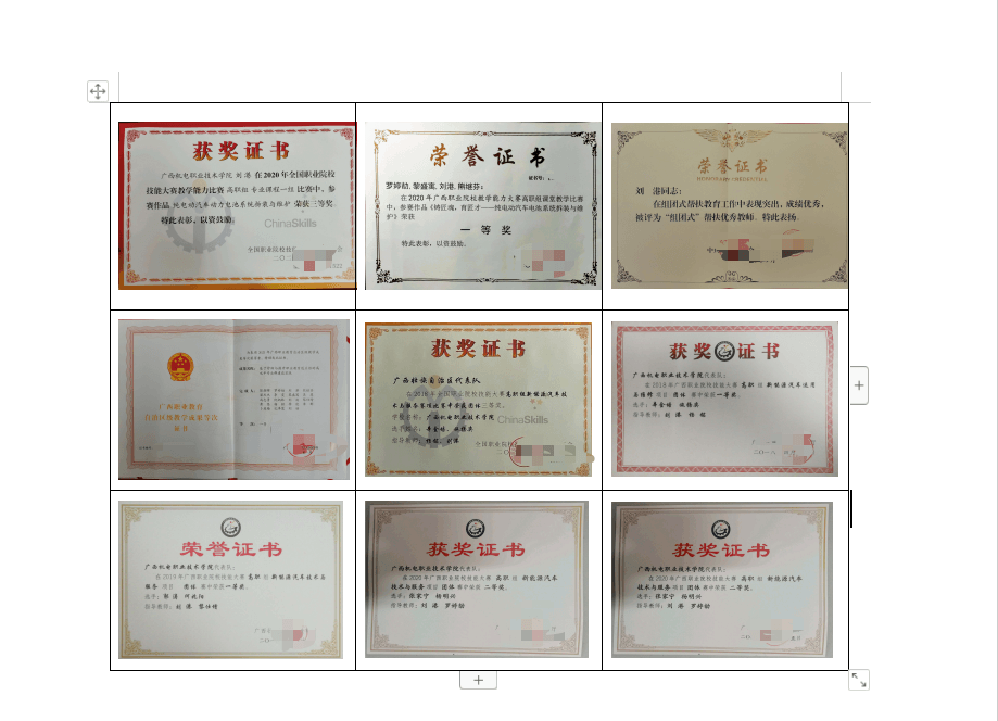 部分获奖(荣誉)证书