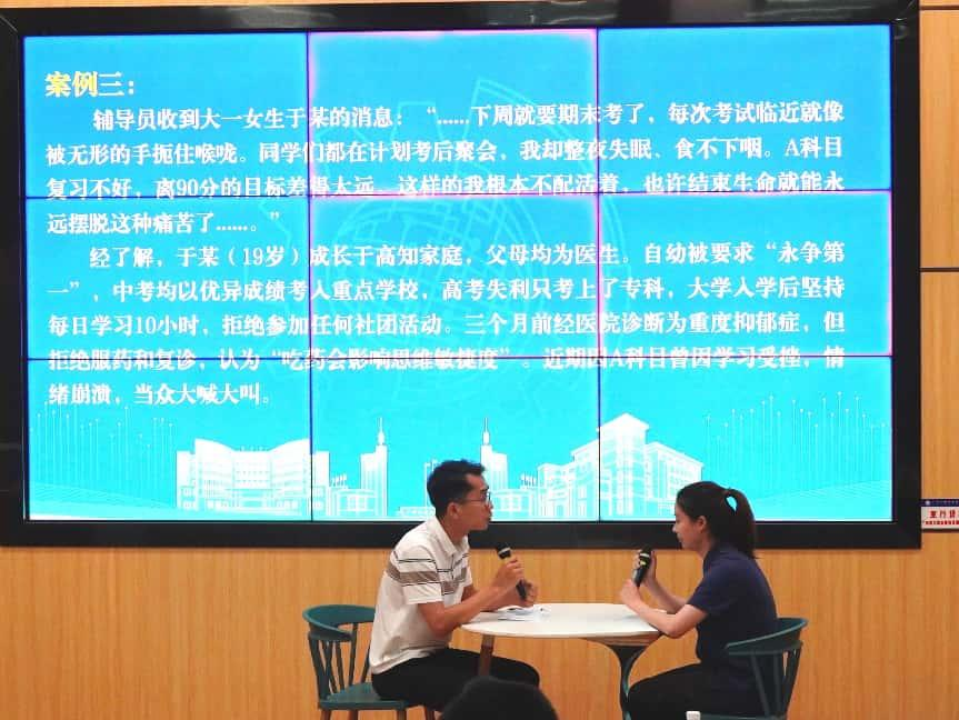 实践环节创新采用“情景模拟+案例研讨”双轨模式。由心理中心教师及二级学院辅导员代表,分别以学生情感纠葛、宿舍人际矛盾、心理重度抑郁焦虑等典型场景展开现场谈心谈话实战。并就可能存在的师生情感问题、大学生恋爱观对心理的影响、大学生不健康心理可能引发自我伤害等常见的重点为、难点等案例展开头脑风暴,通过角色模拟、策略推演等方式探讨适合的解决方案,最终形成具有实操性的工作指南。