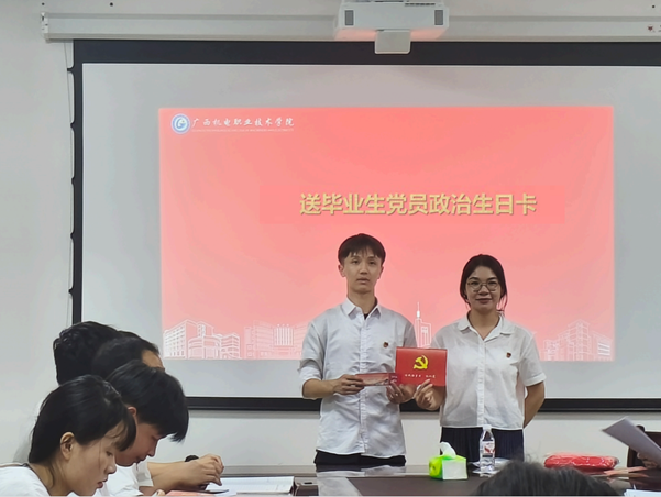 党支部委员为毕业生党员送上政治生日卡