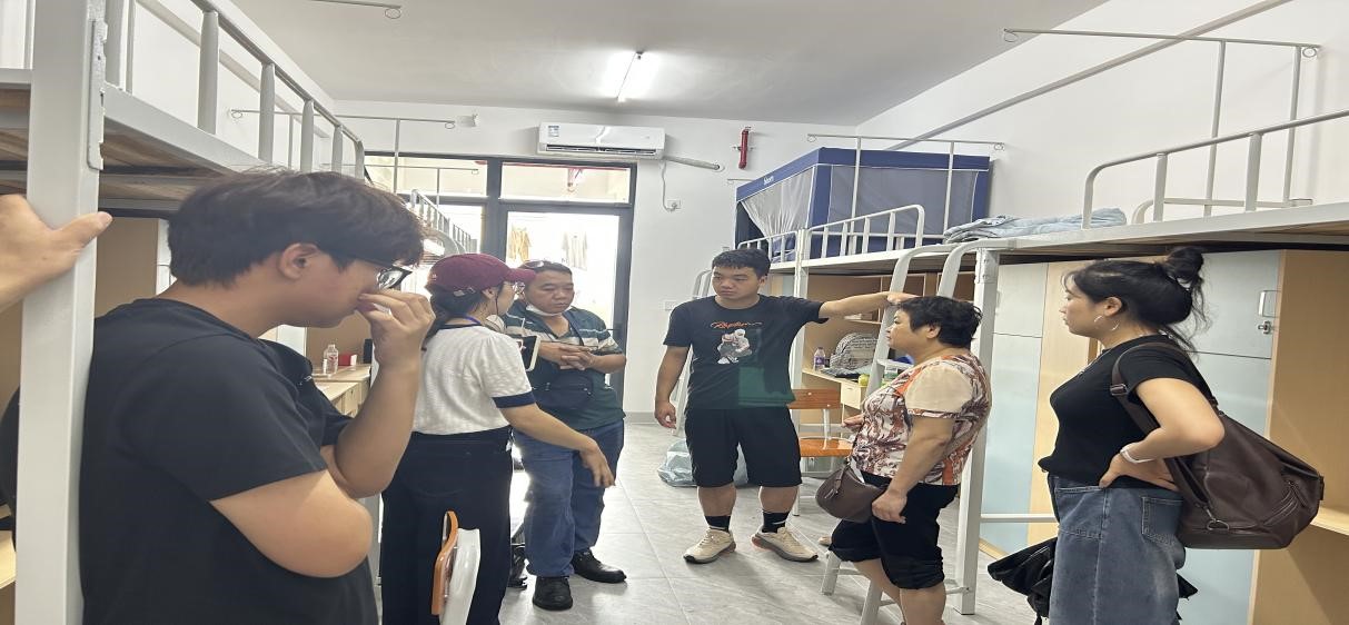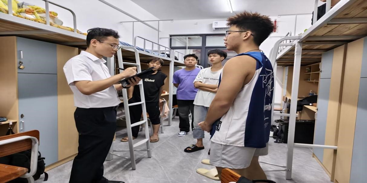 为深入了解新生的住宿情况与生活需求,晚上19:00,学院领导亲自带队,带领辅导员以及新生班主任一同深入学生宿舍开展暖心走访活动。并在走访过程中,细致查看宿舍的安全、卫生状况,设施配备正常使用等情况,耐心询问和倾听新生们初入校园的适应程度和疑问,并进行了详细地解答,同时还鼓励大家积极融入新集体,开启美好的大学生活。辅导员和新生班主任也认真记录下学生们反馈的意见和建议,以便后续及时协调解决,为新生们的学习和生活提供有力保障。