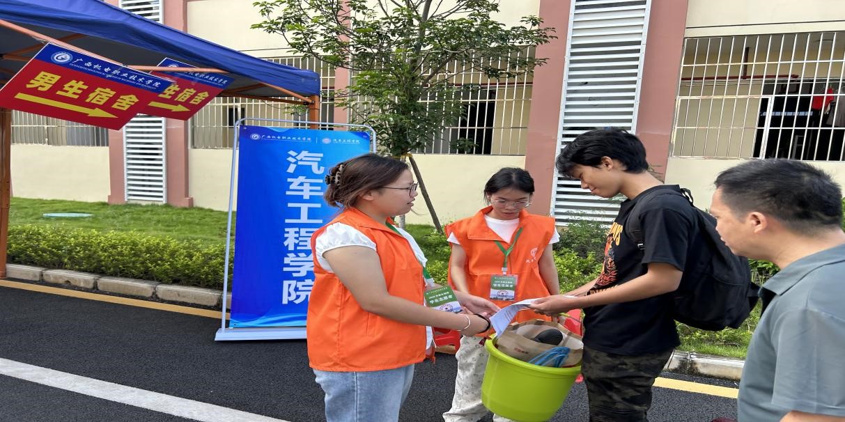 在报到现场,身着橙色文化衫的志愿者们分工明确:引导组举着醒目的“汽车工程学院”引导牌,为新生报到指引方向;报到组在各自的岗位上井然有序地为新生办理报到手续;宿舍服务组为新生引导宿舍方向,热情帮忙搬运行李;由专业教师组成的专业咨询组,在专业咨询点耐心地为同学们答疑解惑;报到现场还开设了“绿色通道”,为家庭经济困难学生提供助学贷款、助学资助等暖心咨询服务。