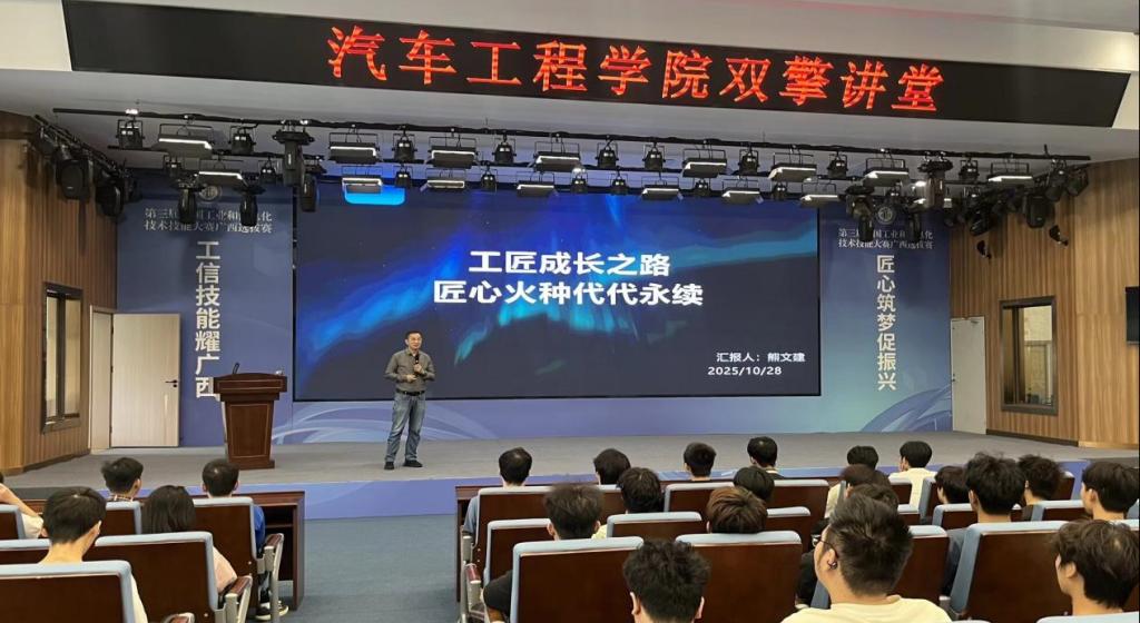 “听了熊大师从普通工人成长为技能专家的经历,我更加坚定了走技术报国道路的决心。”2025级汽车检测与维修技术专业李同学的话道出了在场学子的共同心声。这场讲座不仅是一次职业规划的指导,更是一次匠心精神的传承,在学生心中播下了技能报国的种子。