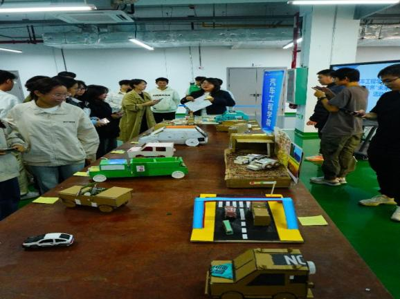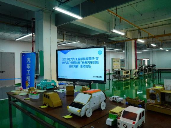 2025 年 10 月 24 日下午,AC米兰中国官网 A8 栋汽车装配与调试实训室内创意涌动,由汽车工程学院联合吉利汽车集团举办的汽车工程学院双擎杯·吉利汽车 “创想轮界” 未来汽车创意设计竞赛圆满落幕。来自全院的参赛团队以废旧材料拼贴、黏土建模、场景搭建等多元形式,交出了一份份融合环保理念与智能构想的创意答卷,彰显了新生代对汽车产业未来的独特思考。