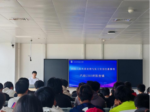 在江南校区A1-404教室,4名优秀毕业班学生代表聚焦实习全流程,带来针对性分享:新能源2305班张振林同学梳理了企业官网、校内推荐等实习信息渠道,并现场演示简历优化技巧;汽检2301班卢涛杰同学结合实操案例,讲解办公软件高阶用法、行业工具操作等专业技能提升路径,以及任务拆解、跨部门协作的通用能力培养方法;汽检2303班陈俊燏同学从汇报工作话术、职场礼仪等人际交流技巧,延伸到通勤安全、防范实习诈骗等安全要点,覆盖实习期间的潜在需求;新能源2303班张经浩同学则以模板为例,详解实习报告结构框架和材料提交规范,解决同学们实习收尾不知如何做的困惑。在“实习模拟咨询”环节,毕业班的学长们结合学弟学妹们的个人意向,提供个性化参考建议,让低年级同学对实习有了进一步的清晰认识,帮助他们明确了行动方向。