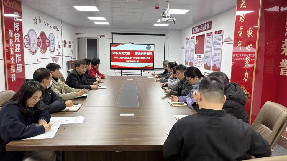 2026年1月12日,汽车工程学院教工第一党支部成功举办了一场以“汲取贺词力量,奋进崭新征程”为主题的党日活动,旨在深入学习国家主席习近平发表的二〇二六年新年贺词,并探讨其如何指引学院的教育与科研工作。党支部书记何勇同志主持,全体党员参加此次活动。