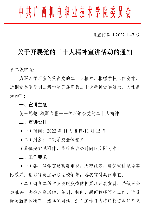 关于开展党的二十大精神宣讲活动的通知