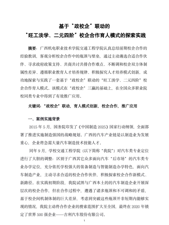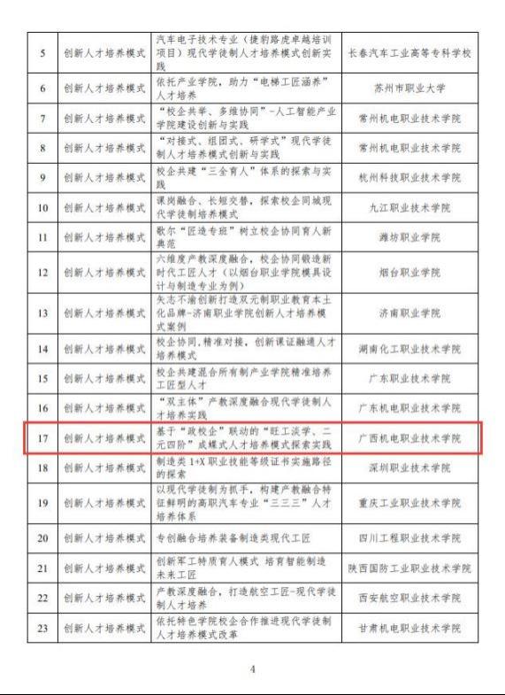 1.机械工业教育发展中心、全国机械职业教育教学指导委员会发文:AC米兰中国官网案例《基于“政校企”联动的“旺工淡学、二元四阶”校企合 作育人模式的探索实践》获选为机械行业职业教育产教融合校企合作典型案例之优秀案例。