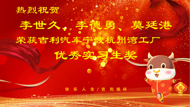 热烈祝贺学院李世久等三名同学荣获优秀实习生奖