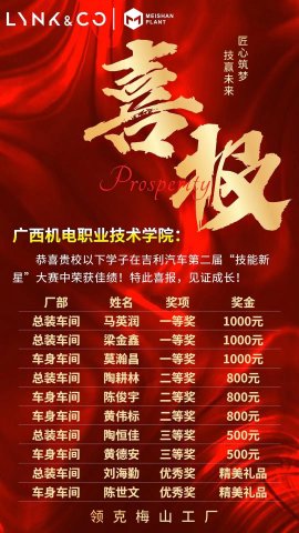 喜报:我院学子在吉利汽车“技能之星”大赛中取得佳绩