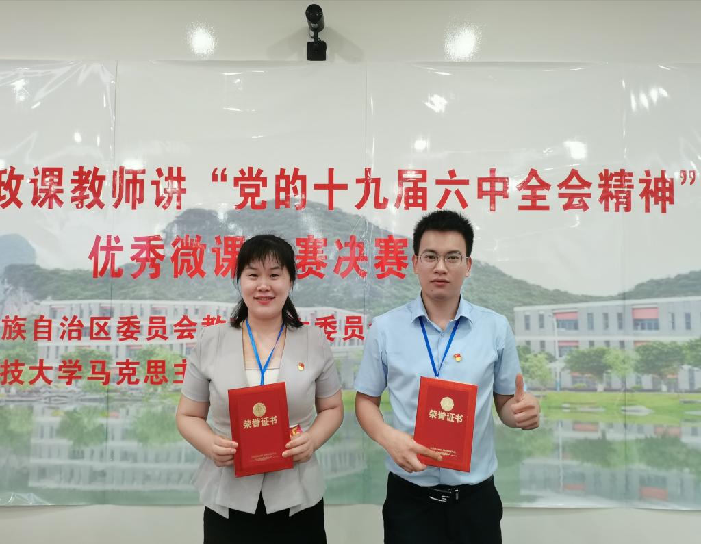 我院教师在全区高校思政课教师讲“党的十九届六中全会精神”优秀微课评选活动决赛中喜...