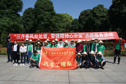 学雷锋活动日 2018年3月20日下午,汽车工程系组织了各部门的小伙伴成立了“志愿者”团队参加学雷锋活动,前往相思湖公园及邕江边进行清洁垃圾活动。从而起到宣传号召学习雷锋月的作....