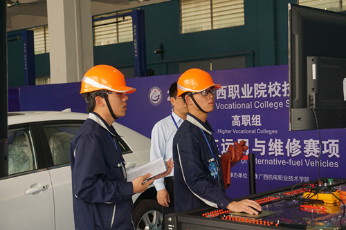 3月27日,由广西壮族自治区教育厅、广西壮族自治区工业与信息化委员会主办的2018年广西职业院校技能大赛“新能源汽车运用与维修”比赛(首届)在我系汽车技术中心隆重举行。来自全区19所高职...
