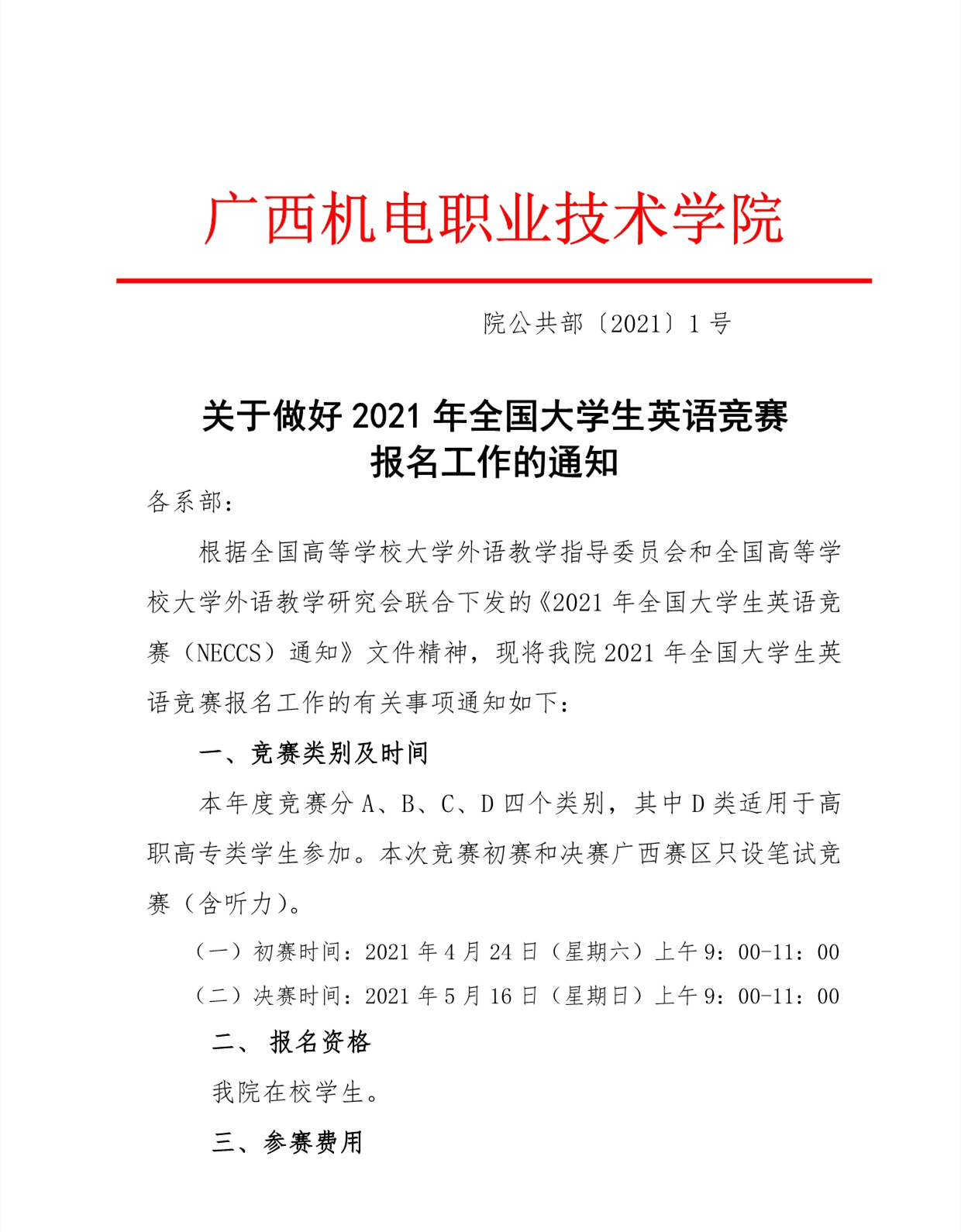 关于做好2021年全国大学生英语竞赛报名工作的通知