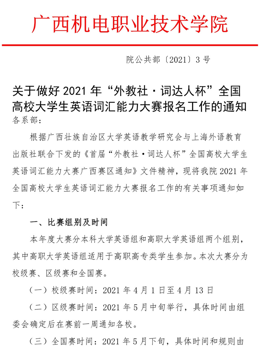 关于做好2021年“外教社.词达人杯”全国高校大学生英语词汇能力大赛报名工作的通知