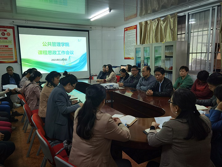 11月2日下午,我院组织全体教师在会议室召开课程思政工作专题会议。会议由梁金凤院长主持,传达上级文件精神,落实巡视整改任务。