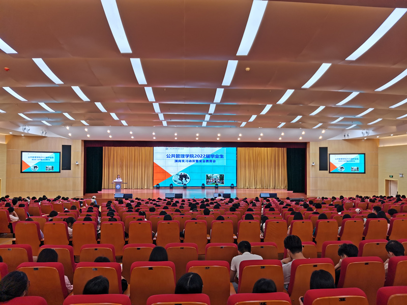 为确保实习工作的顺利有序开展,引导学生做好实习前的各项准备工作,6月4日下午公共管理学院在博远楼小礼堂召开2022届毕业生实习动员暨安全教育大会。公共管理学院领导班子成员、各专业带头人、实习指导老师、辅导员及全体2022届毕业生参加了大会。