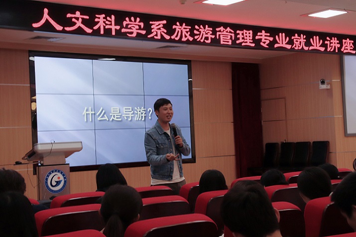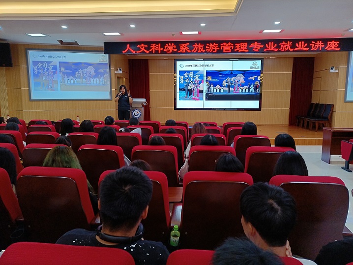 11月9日,我系旅游管理专业邀请了国家金牌导游、国家金牌导游广西联合工作室创始人、广西山禾文旅有限公司总经理、国际研学旅行指导师郝滢屹,广西金牌导游、广西山禾文旅有限公司副总经理、高级研学旅行指导师张珊共同为旅游管理专业全体同学做了一场精彩的就业讲座。两位专家不仅在全国和广西的各项导游服务比赛中获取过佳绩,多年来在导游一线工作、高校旅游教育、旅游行业培训方面都积累了丰富的经验。