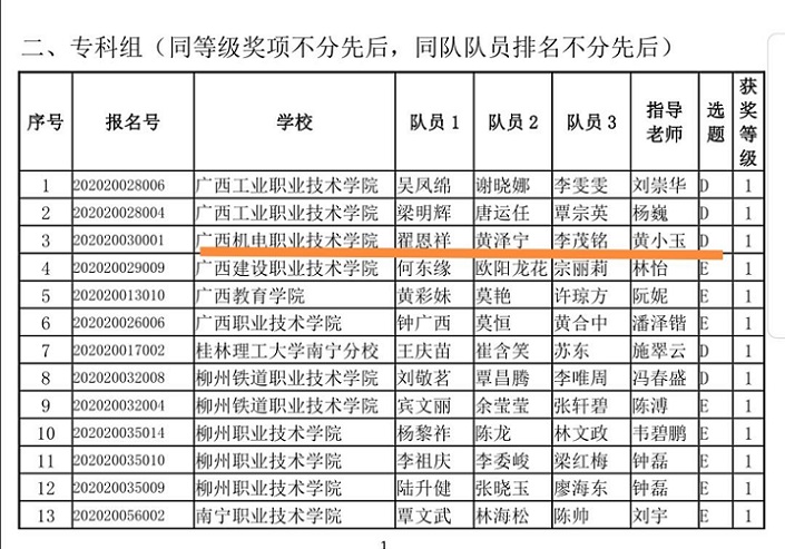 近日,2020高教社杯全国大学生数学建模竞赛结果揭晓。我系数学学科教师指导学生参赛并荣获广西赛区一等奖。
