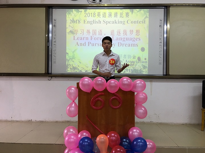 为了贯彻“学以致用”的教学原则,展示英语爱好者英语才华和实力,提高学生学习英语的兴趣,活跃校园气氛,提升英语爱好者协会服务学院学生英语学习的能力,推进学院公共基础人文课程体系建设,并为广西高职院校技能大赛英语口语赛项和学院其他英语赛事挖掘和储备人才,由我院英语爱好者协会主办的“学习外国语,追逐我梦想”英语演讲比赛于12月15日在学院多媒体教室拉开了帷幕。