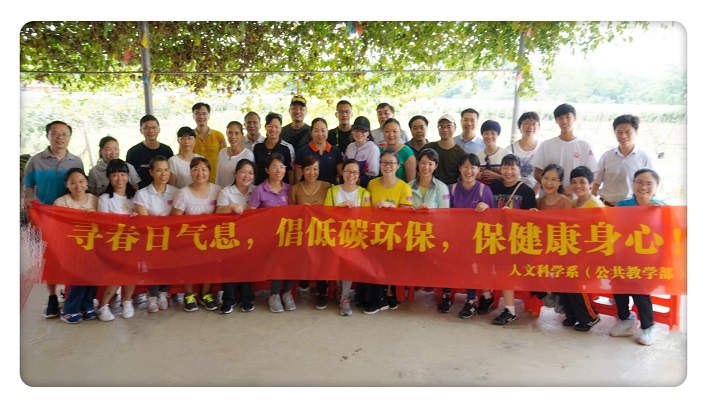 2018年5月12日,人文科学系(公共教学部)组织教职工前往三塘九曲湾新奇乐园农庄开展春游踏青活动。这次春游活动以“寻春日气息、倡低碳环保、保健康身心”为主题,旨在通过春游活动让大家在春的季节放飞心情,远离紧张的工作压力,与大自然亲密接触,从而激发对工作和生活的热情。