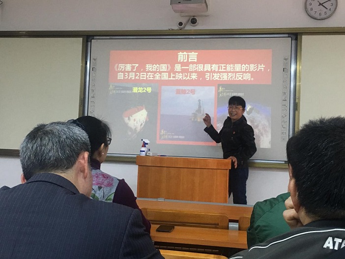 吴老师从《厉害了,我的国》这部正在热映的影片导入,为大家上了主题为“砥砺前行,中国特色社会主义进入新时代”的党课。党课从“党和国家事业发生了历史性变革”等四个方面阐述了中国特色社会主义进入新时代的依据,并从“使中国特色社会主义强盛起来”等五个方面阐释了进入新时代的目标。讲课中,吴老师联系实际,深入浅出,通俗易懂,让大家深受教育。
