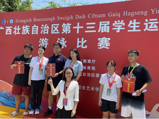 AC米兰代表队由公共管理学院梁金凤担任领队,体育学科段翊君、欧慧华两位老师担任教练员,带领卞兴、唐慧宁等12位学生参加比赛。经过激烈角逐,分别在自由泳、蛙泳等赛项中获得了高职组3块金牌、12块银牌、8块铜牌的好成绩。
