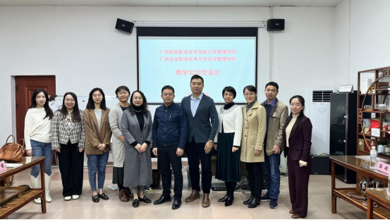 我院交流团队一行受到广西农业职业技术大学经济管理学院苏道稳副院长和相关专业教师的热情接待。苏副院长向到访的我院教师一行表示欢迎,双方互相介绍了各自学院的概况和整体办学情况。随后,双方就本学院的专业设置、师资队伍与学生工作等方面进行介绍,就人才培养方案、专业实训室建设与管理工作、实习管理、校企合作经验和职业技能大赛经验等方面进行经验分享,并就专业建设中出现的问题进行深入的交流与探讨。交流中,互有启发,相互借鉴。