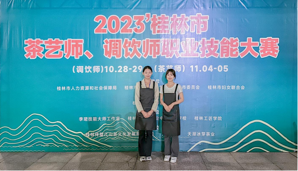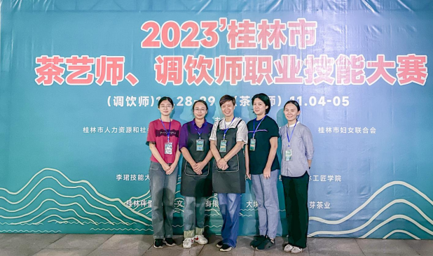 10月29日,2023年桂林市茶艺师、调饮师职业技能大赛在桂林落下帷幕,经过一天的角逐,我院黄嵘、覃靖两位老师分别获得成人组第2名,直接晋升技师(二级)职业技能等级,莫敏燕、赖嘉琳、王欢三位老师获得高级工(三级)职业技能等级,我院吴冬铃、莫妮两位同学分别获得学生组第2、第4名的优异成绩,同时晋升高级工(三级)职业技能等级。