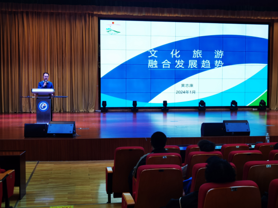 1月3日,广西全国特级导游、广西国际商务职业技术学院文化与旅游学院副院长黄志康受邀到校,为旅游管理专业学生做了题为《旅游发展前景与职业规划》的专题讲座。