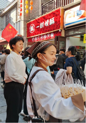 22级学生在三街两巷提供讲解服务