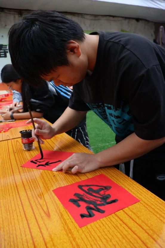 红纸,黑墨,我院学子兴致满满,或认真,或创新,挥毫泼墨,把传统文化“写”出来,形态大小各异的福字表达了我院学子对新年满满的祝福和期许。