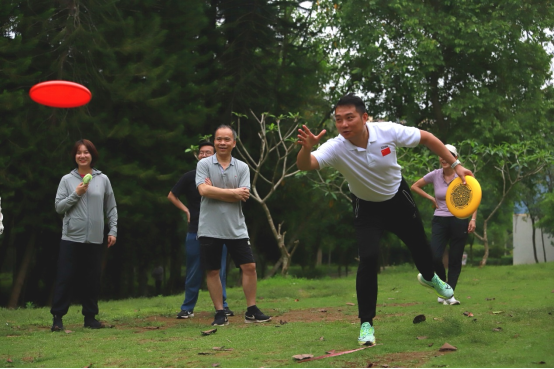 活动伊始,一个轻松愉快的开场游戏“萝卜蹲”迅速点燃了现场的气氛。大家蹲起有序,笑声不断。随后,“接飞盘”“球传千里”与“滚铁环”将活动推向了高潮。上述游戏不仅考验了大家的协调能力和团队协作能力,更在轻松的氛围中增进了彼此的了解和信任。