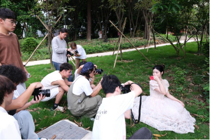 本次摄影交流活动不仅涉及室内摄影的拍摄技巧,更包括室外自然光条件下如何进行商业人像拍摄。陈锋老师积极引导学生思考如何利用自然光线,因地制宜,根据模特自身特点,挖掘模特的肢体表现力,更好地与环境相结合,达成最佳的拍摄状态。学生们纷纷感慨在实践中才能不断发现问题,找到解决问题的方法,丰富知识储备,提升自身摄影水平。