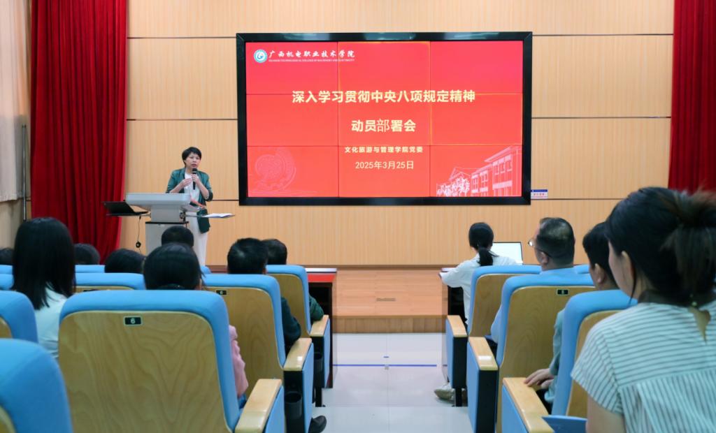 3月25日下午,我院党委在弘毅楼金钻讲堂召开深入贯彻中央八项规定精神学习教育动员部署会,传达学习中央党的建设工作领导小组会议精神和中央办公厅印发的《关于在全党开展深入贯彻中央八项规定精神学习教育的通知》要求,对全院开展深入贯彻中央八项规定精神学习教育进行动员部署。学院党委副书记黄妩主持会议并讲话。