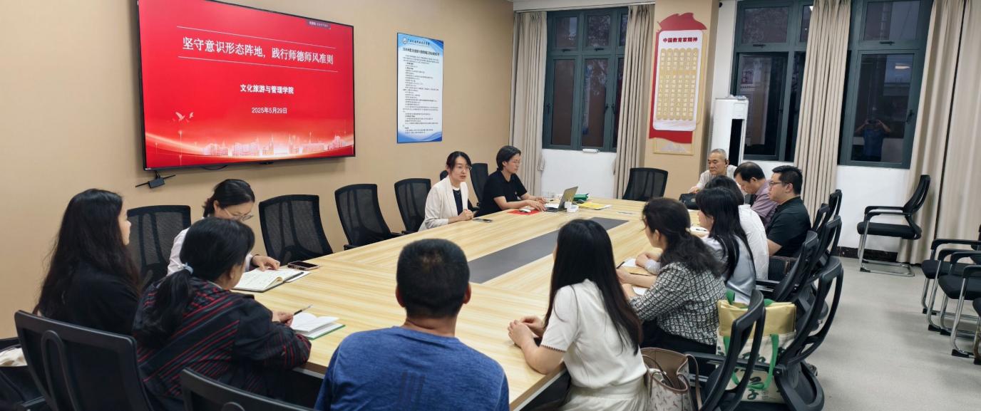 为进一步提升外聘教师专业素养,夯实教学规范与意识形态工作根基,2025年5 月29日晚,文化旅游与管理学院于学院会议室成功举办外聘教师“双专题”培训会议。全体外聘教师和学院教研室主任参加了此次培训。