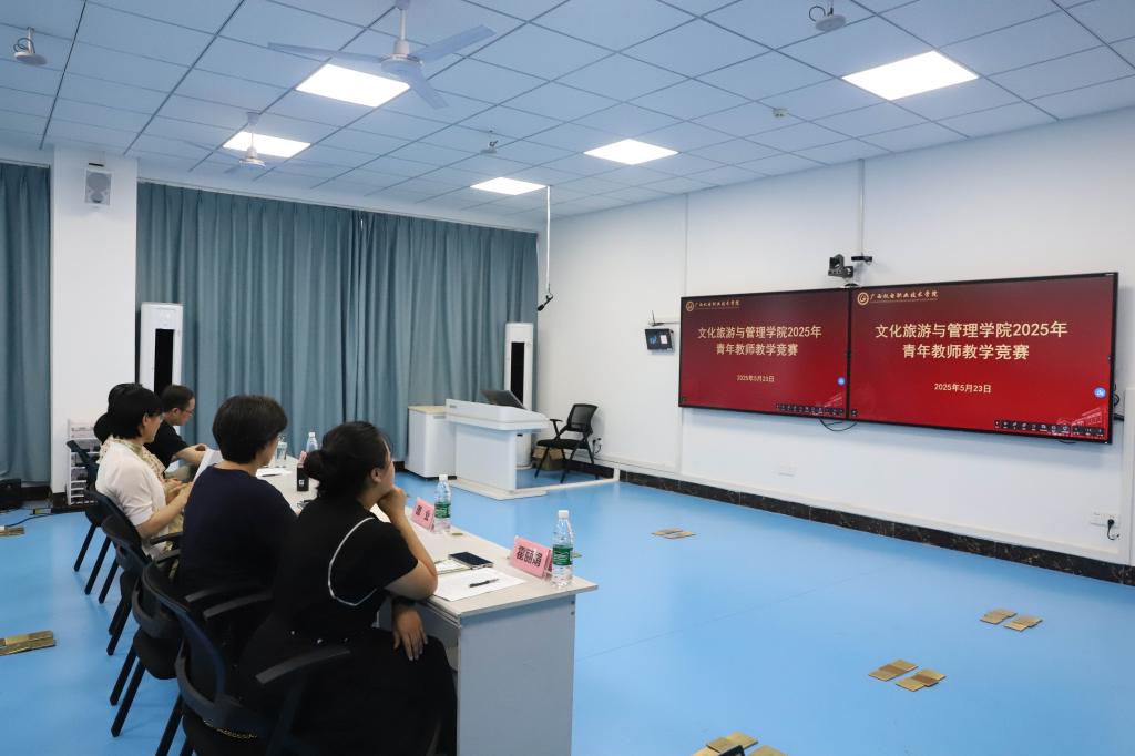 2025年5月23日下午,AC米兰中国官网文化旅游与管理学院摄影实验室内紧张的比赛现场时不时传来阵阵热烈的掌声,9位青年教师正以“10分钟微课”形式展开教学能力大比武。本次竞赛以“夯实教学根基,锻造匠心课堂”为主题,旨在通过“以赛促教、以赛促改”的创新机制,全面检验文旅学院各专业青年教师的教学基本功,为更高级别的教学能力比赛优中选优,选拔、培养和推荐好苗子。
