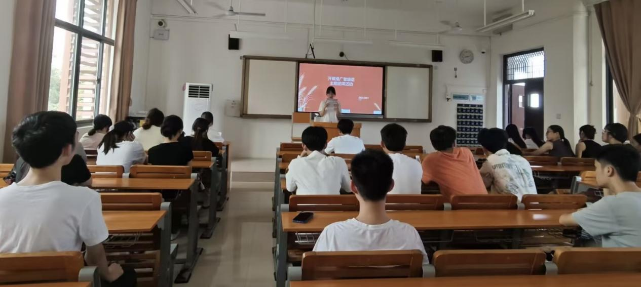 活动期间,各团支部积极创新活动形式,推出“非遗里的普通话”系列主题团课。通过组织观看绣球制作、壮锦编织等民族技艺视频,引导学生在动手实践中使用普通话讲解工艺背后的文化内涵。其中“壮语—普通话”互译擂台赛环节吸引了许多少数民族学生踊跃参与,地方谚语互译挑战更是妙趣横生,成为活动现场的一大亮点。