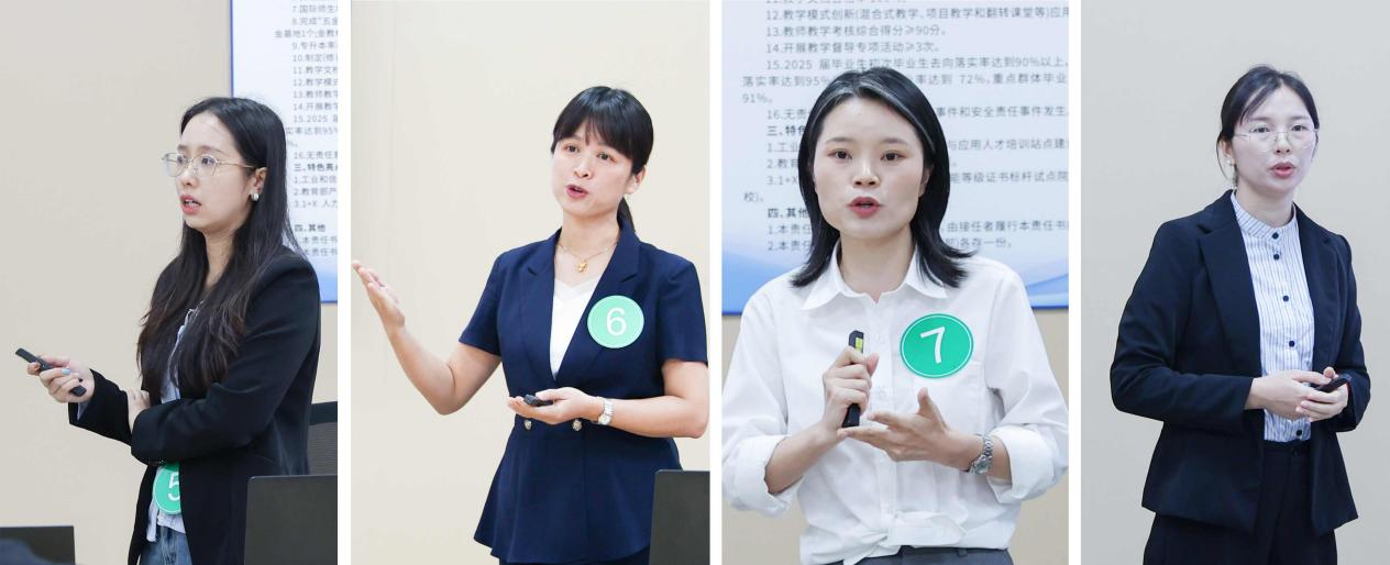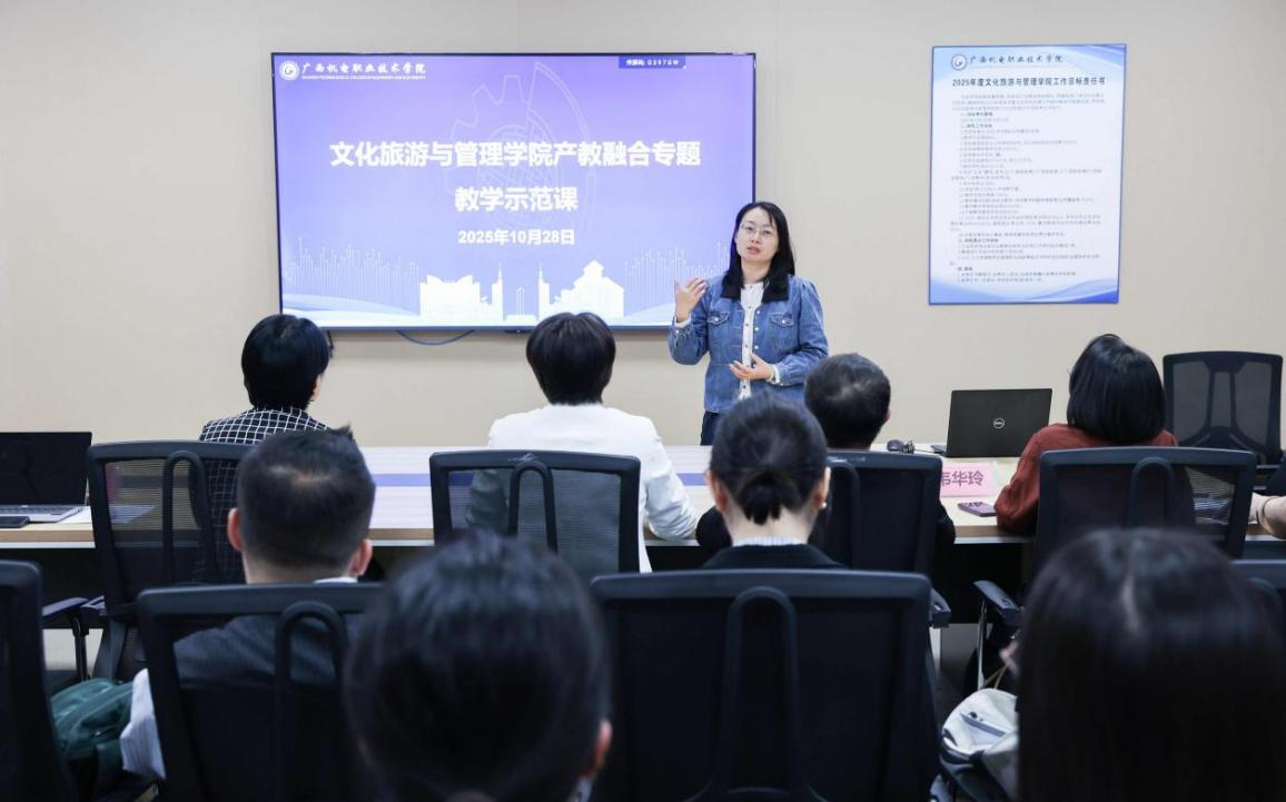说课现场亮点频出。工商企业管理专业的刘洋老师结合广西大疆农业服务有限公司无人机服务企业的案例,引导学生分析行业竞争格局,实现经济学理论向企业运营实践的转化。摄影摄像专业的杨海林老师以“项目一级校色”为实战任务,借助“桂有优品《巴马小谷鸡》”素材的调色技术演示,展示乡村振兴成果,引导学生关注家乡发展,增强家国情怀。现代文秘专业的李霞老师聚焦“会议前策划与筹备”,以学校举办“2025中国(广西)—东盟职业教育合作发展大会‘AI赋能先进制造工匠培养’平行会议”为教学场景,带领学生完成会场布置、服务执行等环节,实现知行合一。评委组从项目真实性、产业契合度、双师协作深度、教学创新性四个维度对参赛教师进行客观公正的量化评价。经过激烈角逐,最终评选推荐刘洋、杨海林、李霞三位老师代表我院参加学校教学示范课。