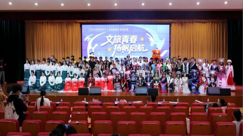 近日,文化旅游与管理学院“文旅青春,扬帆起航”迎新晚会在博远楼小礼堂成功举办,晚会节目形式多样,精彩纷呈。学院党委书记黄妩、院长付瑶、教师代表及2025级新生共同出席本次活动。