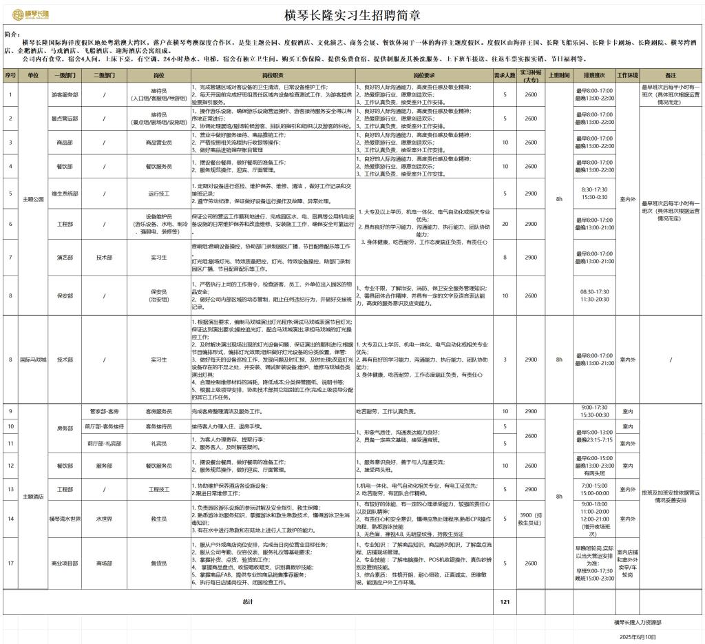校园招聘——2025年横琴长隆春季实习生招聘需求