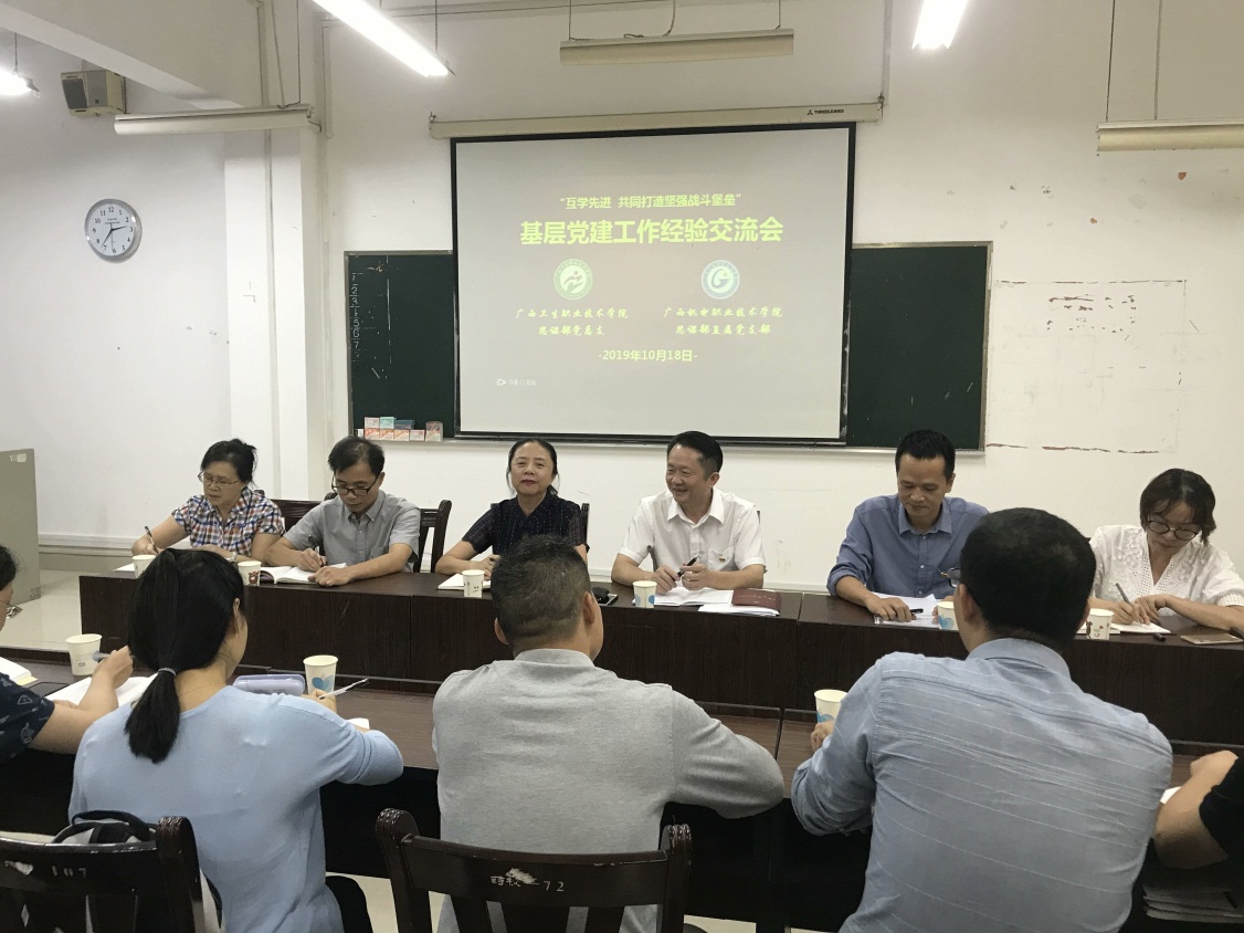10月18日,思政部直属党支部与广西卫生厅先进基层党组织广西卫生职业学院思政部党总支联系共同举办“互学互鉴 共建堡垒”基层党组织创优经验交流会。