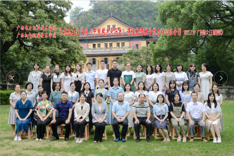 在举国上下隆重庆祝中国共产党百年华诞之际,由我院与广西电力职业技术学院马克思主义学院联合举办的《中国共产党历史》课程教师教学能力培训班于7月18日至25日在桂林顺利举办,我院派出5名思政课专任教师参加了培训。