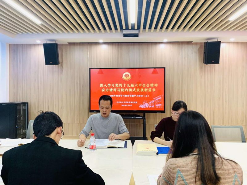 2021年11月16日下午,马克思主义学院直属党支部在马院会议室举办学习贯彻落实党的十九届六中全会精神暨全会精神进课堂研讨会、党史学习教育专题研讨(五)。