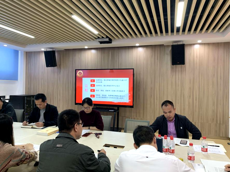 会上,副院长刘靖怡领学党的十九届六中全会公报。我院赵孟、覃俊、唐新华三位博士结合自己的研究方向,分别从共铸中国梦、党的执政合法性、知识产权和育创新人才的角度,分享对会议精神的更深层次理解。郑斯原、谭秋盈、陆碧琳三位新任思政课教师结合党建和业务做了交流发言,与会党员教师就学习内容进行深入研讨。