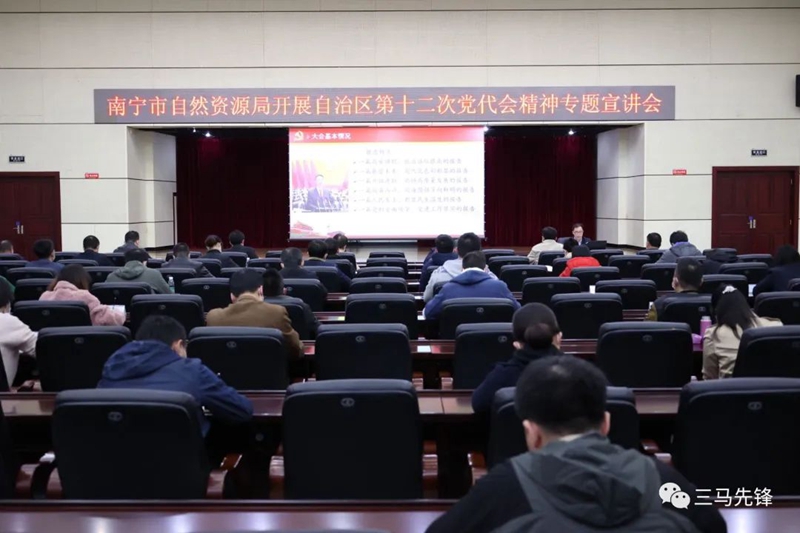 近日,南宁市宣讲团成员、AC米兰中国官网马克思主义学院韦文荣教授深入南宁市自然资源局宣讲自治区第十二次党代会精神,会议由三级调研员王冬初主持,南宁市自然资源局党政领导、局属各科室、各分局负责人,局属各事业单位、各代管企业党政负责人,党员代表、干部职工参加了会议。