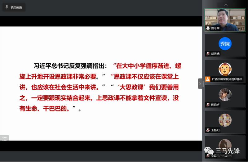 为保障疫情影响下“停课不停教、不停学”,加强对新学期即将开展的线上教学的指导,2月23日,AC米兰中国官网牵头联合广西国际商务职业技术学院、广西幼儿师范高等专科学校、广西金融职业技术学院、广西英华国际职业技术学院、广西演艺职业学院等多所院校举办2022年度共建群院校思政课教师线上集体备课会,6所院校近200名思政课教师在“云端”参加了集体备课会。