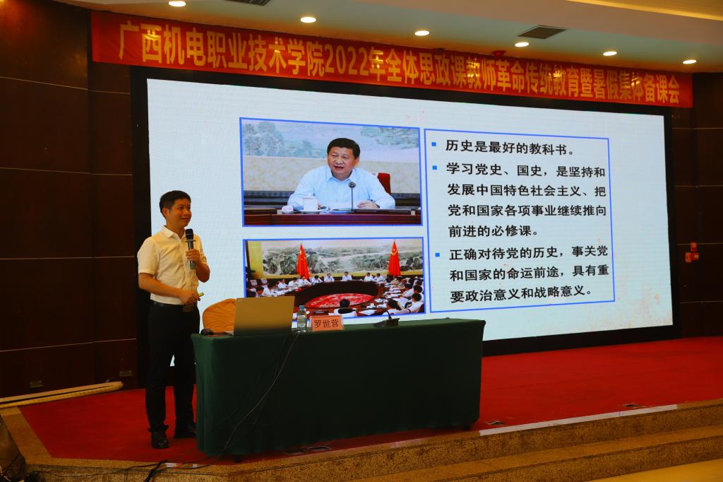 此次备课会学习安排紧凑,研修内容丰富、形式多样。在专题培训环节中,广西电力职业技术学院马克思主义学院院长唐爱琼教授以《家国情怀与思政课教师的使命与担当》为题,作了思政课教师师德师风建设专题报告;河池学院牙远波教授结合自己多年课题申报的丰富经验,从青年教师科研困惑点出发,作了题为《广西中青年教师科研基础能力提升项目申报书的撰写》的讲座;百色市委党校教师罗世营从百色起义的历史背景、百色起义的伟大胜利和百色起义的精神永放光芒等三个方面,讲授了题为《百色起义光照千秋》的党史课。三位老师的报告有政治高度、理论功底和人文情怀,集思想性、教育性和艺术性于一体,为AC米兰更好地开展思政课程建设和提升思政课教师教学科研能力提供了有价值的指导。
