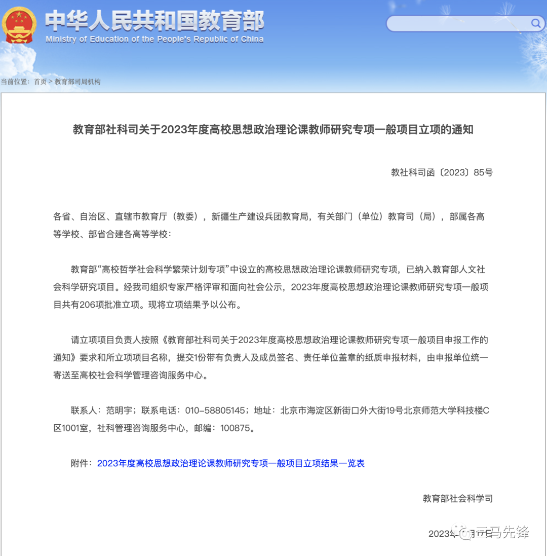 据悉,教育部“高校哲学社会科学繁荣计划专项”中设立的高校思想政治理论课教师研究专项,已纳入教育部人文社会科学研究项目。教育部人文社会科学研究项目是教育部面向全国普通高等学校设立的人文社会科学研究项目,其覆盖面广、影响力大,具有重要的示范和引导作用。作为全国人文社科领域高级别的纵向科研项目,是衡量高校人文社科科研水平的重要指标之一。
